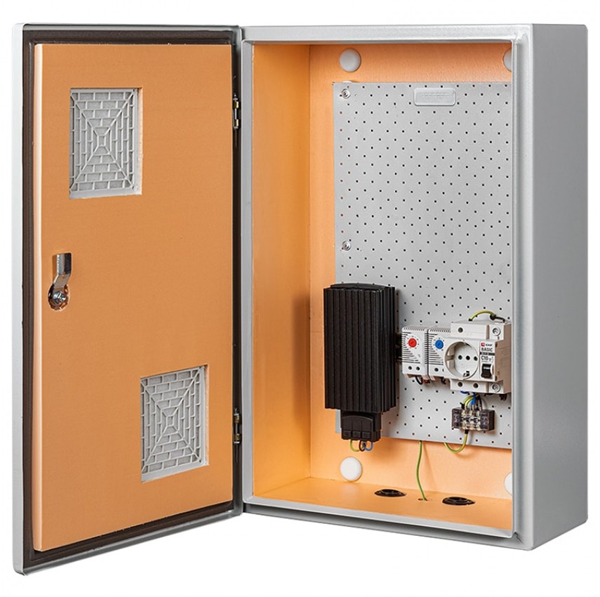 Климатический монтажный шкаф предназначен для установки оборудования с необходимостью соблюдения температурного режима и влажности. Степень защиты IP54. Комплектация: замок, ключ, монтажная плата, 2 гермоввода, розетка, авт. выключатель, термореле, реле предстарта, нагреватель 75Вт, вентиляционные панели, уплотнительная прокладка. Габаритные размеры внешн./внутр. 360х590х190мм./320х520х130мм.