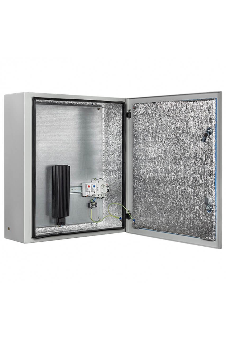 Климатический монтажный шкаф предназначен для установки оборудования с необходимостью соблюдения температурного режима. Степень защиты IP66. Комплектация: утеплитель, замок 2 шт., ключ, монтажная плата, 2 гермоввода, розетка, автоматический выключатель, термореле, нагреватель 150Вт, уплотнительная прокладка. Габаритные размеры внешн./внутр. 600х600х210мм./570х570х150мм.