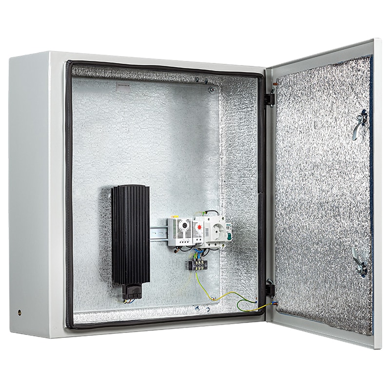 Климатический монтажный шкаф предназначен для установки оборудования с необходимостью соблюдения температурного режима и влажности. Степень защиты IP66. Комплектация: замок 2 шт, ключ, монтажная плата, 2 гермоввода, розетка, авт. выключатель, гигростат мех., нагреватель 150Вт, уплотнительная прокладка. Габаритные размеры внешн./внутр. 600х600х210мм./570х570х150мм.Климатический монтажный шкаф предназначен для установки оборудования с необходимостью соблюдения температурного режима и влажности. Степень защиты IP66. Комплектация: замок 2 шт, ключ, монтажная плата, 2 гермоввода, розетка, авт. выключатель, гигростат мех., нагреватель 150Вт, уплотнительная прокладка. Габаритные размеры внешн./внутр. 600х600х210мм./570х570х150мм.