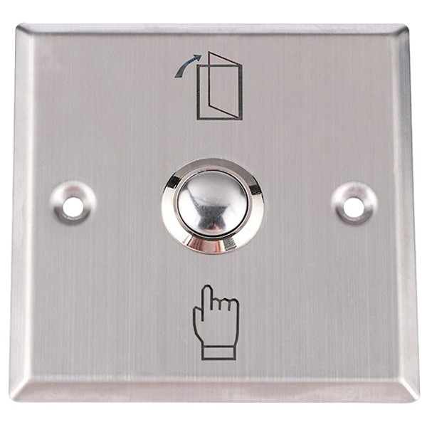 Кнопка выхода врезная металлическая (нерж. сталь). Коммутируемый ток - 3А. Контакты НО. Габаритные размер: 86х86 мм