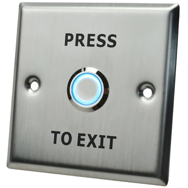 Кнопка выхода врезная металлическая (нерж. сталь). Светодиодная подсветка. Коммутируемый ток - 3А. Контакты НО/НЗ. Габаритные размер: 86х86 мм