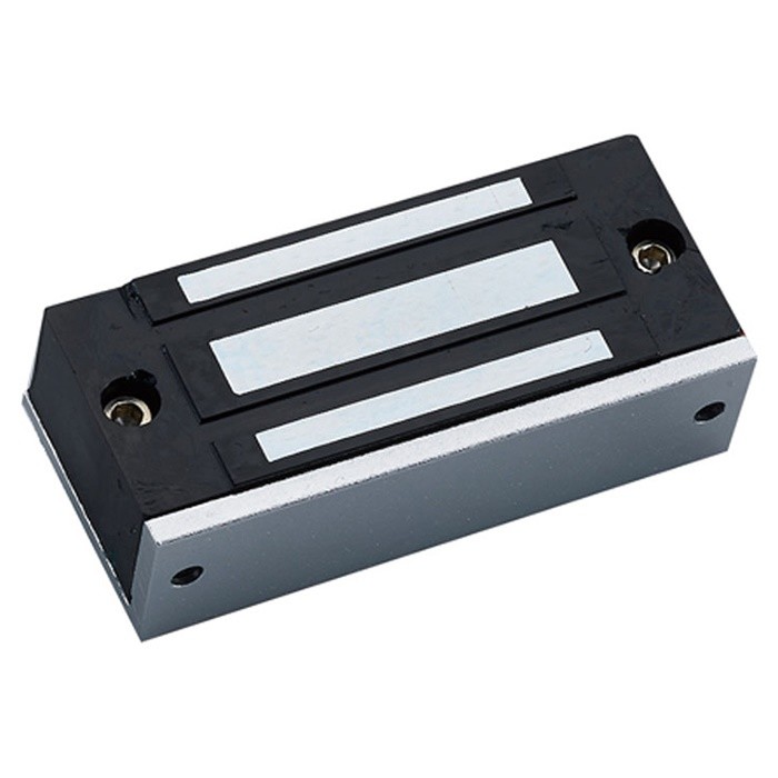 Усилие удержания 60 кг. Габаритные размеры 80х33х19 мм. Монтажная планка в комплекте. Анодированный алюминий. Питание 12В/300мА. Температура эксплуатации -40..+55 С.